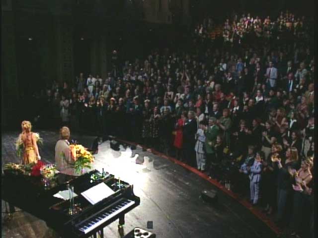 Bei allem Humor: Die 43-jährige, die ob ihres breiten Repertoires und ihres vielschichtigen Könnens nicht so recht in eine bestimmte Schublade passen will, erscheint humoresk, ohne sich nur ansatzweise der Lächerlichkeit preis zugeben, begehrt auf, ohne peinlich oder anbiedern zu wirken und überzeugt immer wieder durch ihre wandelbare, klare Stimme. Dabei schlüpft sie in viele Rollen, persifliert und gibt das Seelenleben einer enttäuschten Variété -Künstlerin (‘Ich bin beim Kunstwerk der Trick’) ebenso wieder wie den langsamen Verfall einer alternden Operettendiva, deren größtes Glück es scheint, sich sturzbetrunken an den Pianisten ran zu werfen – bemerkenswert hierbei Christoph Pauli, der, die eine Hand nach der Partitur nestelnd, die unter den Flügel gefallen war, mit der anderen Hand quasi „blind“ seine Partnerin begleitet. (…)