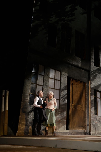 Der Fokus wird frei für die bewegende Romanze von Cliffs pragmatischer Vermieterin Schneider (kratzbürstig-liebenswert: April Hailer) und ihres distinguierten jüdischen Verehrers Schulz (Norbert Heckner mit einer wunderbaren Performance) – und für eine echte Inszenierung ‘Marke Luisenburg’. Das Wagnis eines vorsichtigen Neuanfangs zwischen zwei älteren Menschen, eingebettet in den aufkommenden Nationalsozialismus, nimmt die für dieses Thema sensibilisierten Luisenburg-Zuschauer mit. Weg von den – von einer begreifbaren Realität losgelösten – Horror-Bildern des Dritten Reichs wird im Kleinen tragisch deutlich, was dieses alles zerstört hat: hier die vage Hoffnung auf ein spätes Glück. (…)